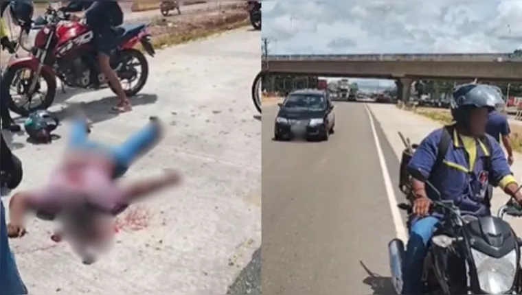 Através de um vídeo que foi gravado por populares, é possível ver o corpo de um homem no chão da via, com sangue na parte da cabeça.