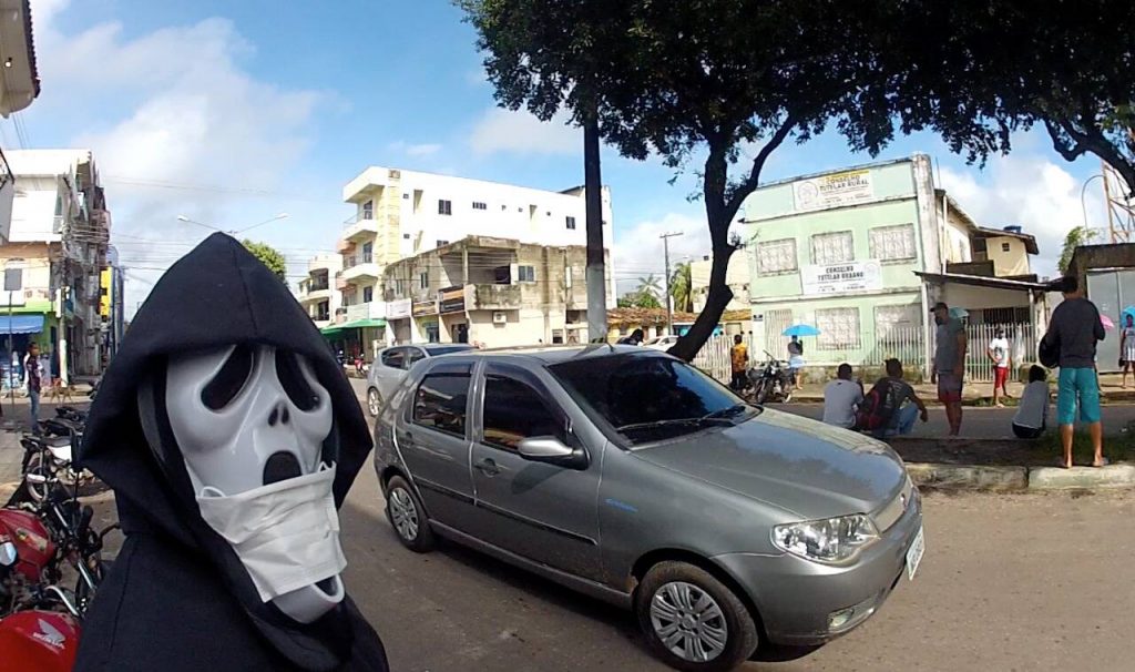 “Vestimos uma pessoa de morte e colocamos câmera na foice. Foi uma experiência social minha com um amigo para poder ver qual a sensação das pessoas em ver que tá todo mundo arriscando sua vida por R$ 600. E as pessoas paravam pra tirar foto com a morte!”, relata Bruno Veiga, que teve a ideia juntamente com o amigo Lauri Fernandes.