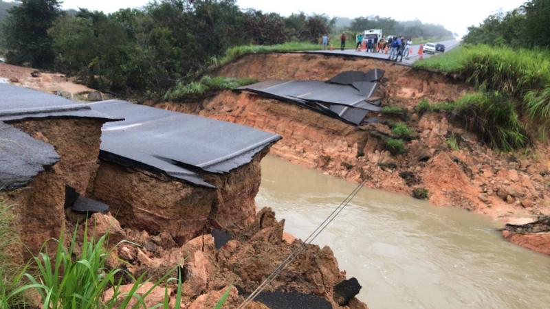 Após o transbordo de um igarapé, no Km 210 da rodovia BR-010, a rodovia federal se rompeu no município de Ipixuna do Pará, no nordeste paraense. Uma imensa cratera medindo cerca de 8m de extensão se abriu, de uma margem a outra e continua aumentando, segundo a Polícia Rodoviária Federal (PRF).