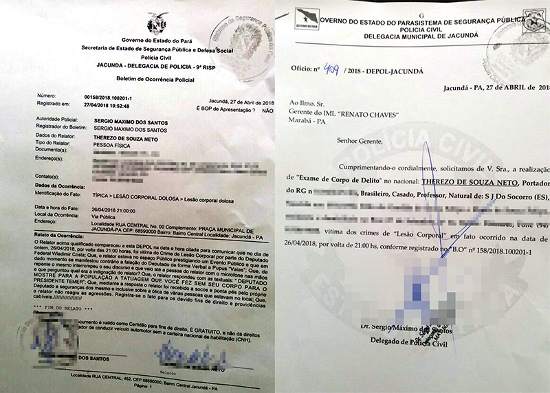 Durante a manhã de sexta-feira (27), o professor Therezo procurou a delegacia local para registrar o boletim de ocorrência. A Polícia Civil solicitou um exame de corpo de delito, que deverá ser feito na manhã de sábado (28).