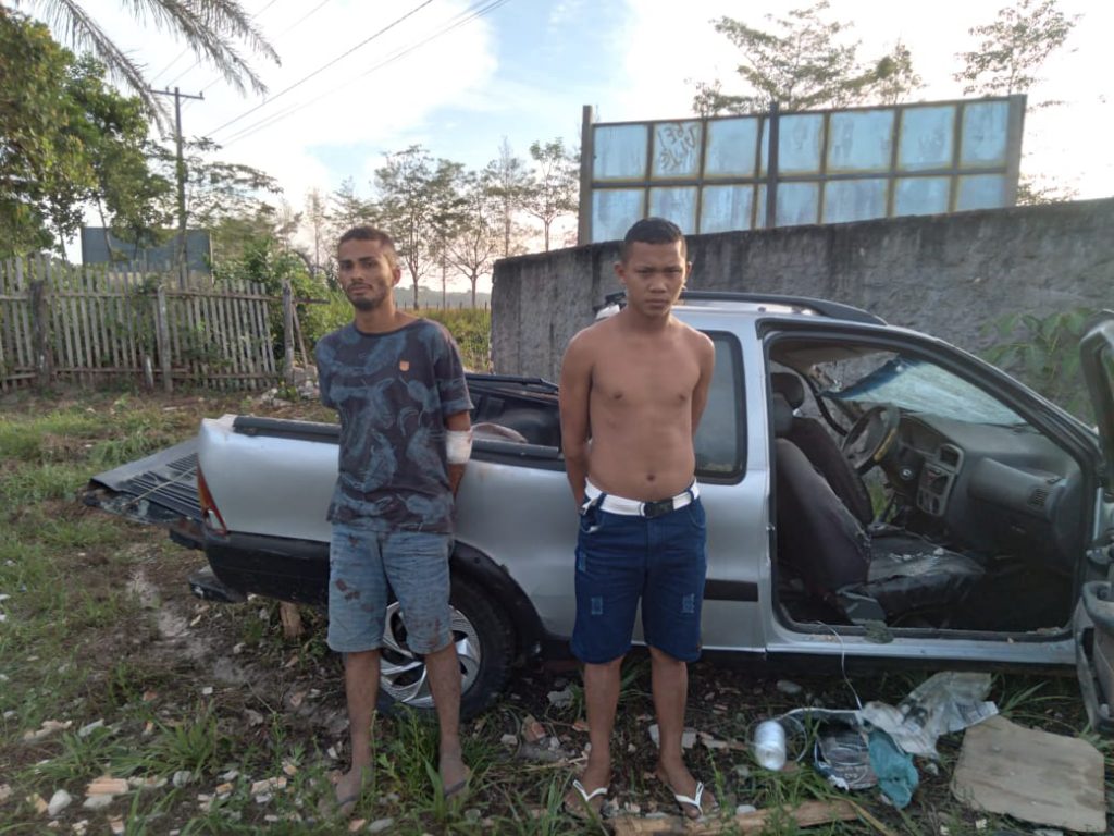 Já na altura da vila Santa Cruz, os bandidos perderam o controle do veículo e bateram de frente no muro de um sítio na Vila Santa Cruz. Edson Rodrigues da Silva, que é um dos assaltantes, foi socorrido para a Unidade Mista de Saúde, enquanto Rafael Silva, conhecido no mundo do crime como ‘Papaizão’, fugiu para uma Invasão, mas a Polícia Militar conseguiu capturar ele também.