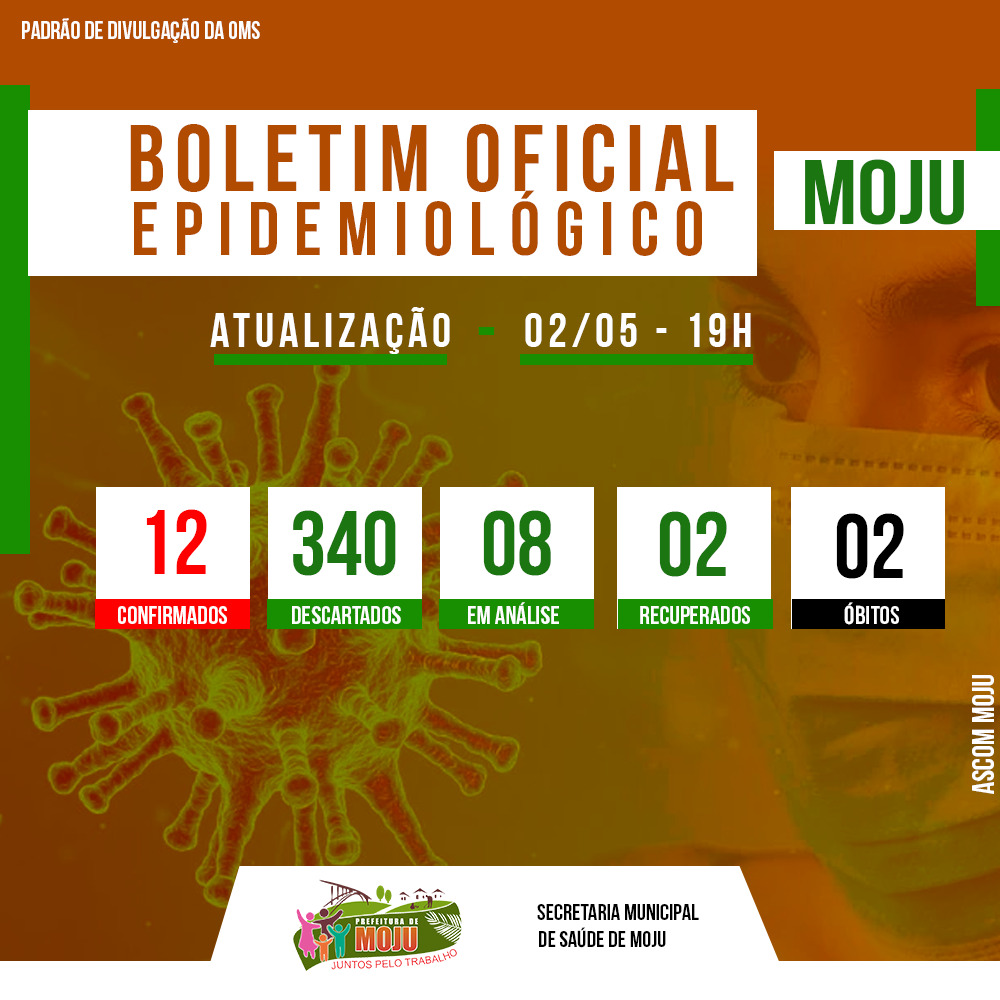 Moju registrou, infelizmente, dois óbitos pelo vírus e ainda há 8 casos suspeitos, aguardando resultado de exames. As boas notícias do boletim, são os 340 casos descartados e outros 2 recuperados.