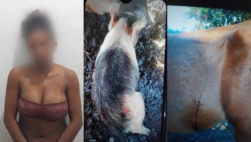 A agressora utilizou um pedaço de pau para bater no cachorro e nos porcos, e ainda desferiu um corte de faca na barriga do cavalo pertencente ao seu ex-marido. Em um ato de desespero para salvar o cavalo, o ex-marido lutou com a mulher e conseguiu desarmá-la, mas sofreu um corte no braço esquerdo durante a ação.