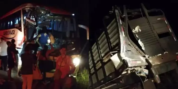 Um ônibus colidiu na traseira de um caminhão na madrugada desta quarta-feira (4/9), na PA-252, em Moju, nordeste do Pará. O caso ocorreu por volta da 1h, nas proximidades da ponte sobre o Rio Moju. O coletivo tinha saído de Belém e se dirigia ao sul do Pará. Não houve mortes. A causa do acidente ainda é desconhecida, mas está sendo investigada pelas autoridades.