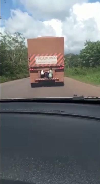 Um homem foi flagrado pegando carona na parte de trás de um caminhão no trecho da PA-150 entre os municípios de Abaetetuba e Moju.