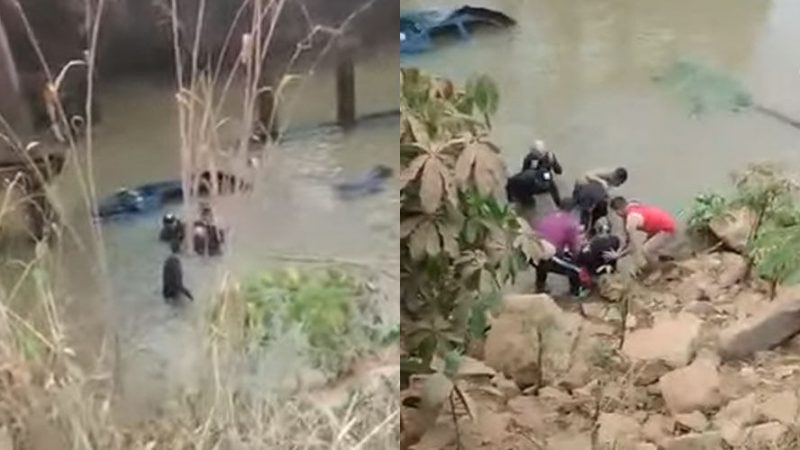 Além do motorista, outras duas pessoas estavam como passageiras. Uma delas foi retirada de dentro do carro ainda inconsciente. Uma testemunha disse que estava pescando quando viu o veículo caindo no rio.