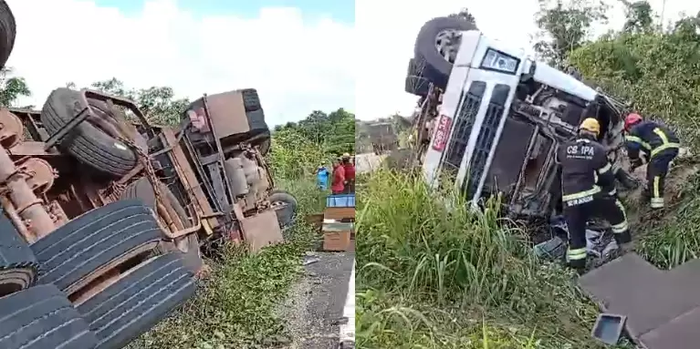 Um motorista, identificado inicialmente pelo nome de Kleber, morreu após o caminhão que ele conduzia tombar na PA-256, em Paragominas, sudeste do Pará. O grave acidente de trânsito foi registrado na manhã desta terça-feira (25/3), em uma curva na via. A vítima ficou presa às ferragens e não resistiu.