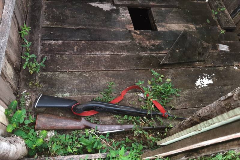 ARMAS APREENDIDAS – Em diligência policial, também realizada na região do Caip, zona rural de Paragominas, a equipe de policiais civis da DEAM/DEACA apreendeu uma arma de fogo de fabricação caseira e uma arma de ar comprimido que estavam em uma casa na região. As apreensões foram realizadas durante a operação Ísis, no último dia 3. Conforme a delegada Amanda Costa, a Polícia Civil recebeu notícia de que uma adolescente de 14 anos estaria grávida. Ainda, segundo a denúncia, a menor estaria convivendo maritalmente com um homem suspeito de cometer crimes de estupro e tráfico de drogas na localidade.