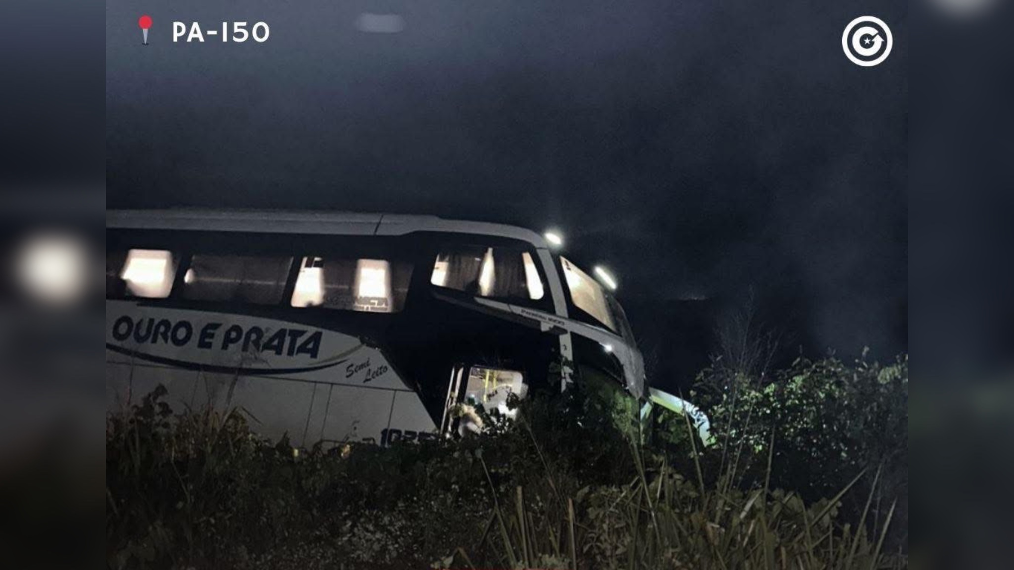 Por volta de 1h da manhã desta quinta-feira (9), um ônibus da linha Ouro e Prata que fazia o trajeto Santarém-Belém saiu da pista após atingir um buraco na PA-150, cerca de 10 km após o município de Tailândia, no sentido Belém.