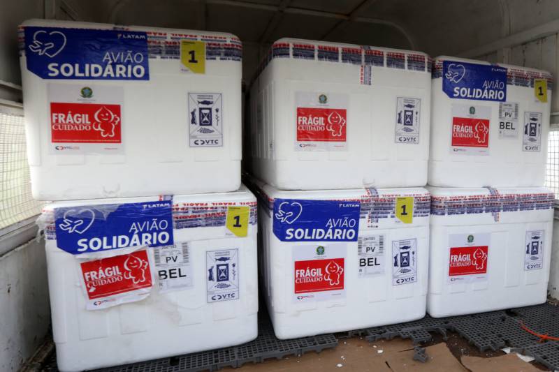 O Pará recebeu na tarde desta quarta-feira (26), mais duas remessas das vacinas contra a Covid-19. Tratam-se da vigésima quinta com 19.890 doses de Pfizer e a vigésima sexta remessa com 195.000 doses da Oxford/AstraZeneca. Até o momento, o Pará recebeu do Ministério da Saúde 3.111.640 de doses, sendo 1.239.440 da CoronaVac, 1.778.600 da Oxford/AstraZeneca e 93.600 da Pfizer.