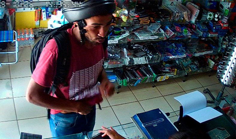 Em seguida, dirigiu-se à funcionária do caixa, sempre agindo com muita violência e proferindo palavrões. Depois, promoveu um quebra-quebra no estabelecimento comercial e saiu em uma motocicleta vermelha, que também foi encontrada na casa que lhe servia de esconderijo.