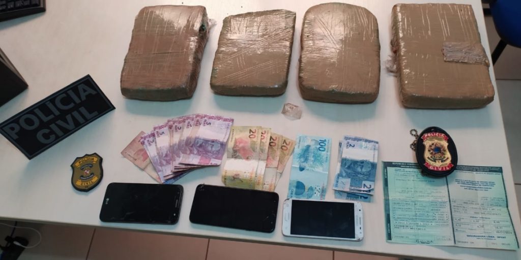 Márcio Vinicios de Abreu Silva, Jefferson Sousa Ferreira, e Zedequias Santos foram abordados pelos agentes da PC, que localizaram quatro tabletes de maconha no interior do painel do carro.