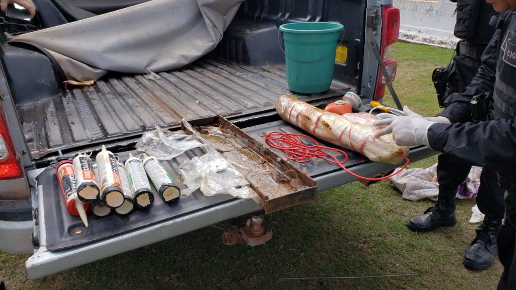 O material foi encontrado, dentro de uma caminhonete usada pelos bandidos durante o assalto, ocorrido no dia 22 de outubro. O veículo foi abandonada em uma estrada vicinal.