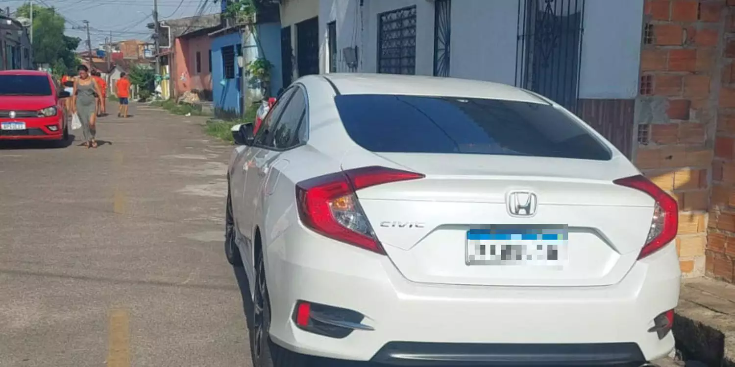 A imagem mostra o carro da vítima, o qual os suspeitos fugiram e foi localizado pela Polícia Militar após o crime. (Foto: Reprodução | Redes sociais)