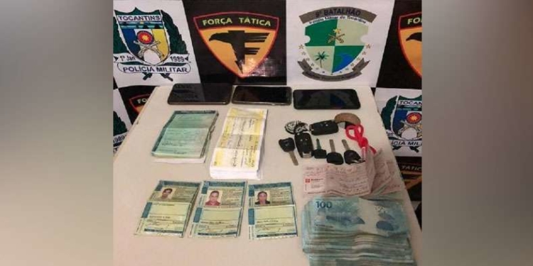 A poder do casal e seu filho, a Polícia Militar apreendeu quase R$ 5,5 mil reais em dinheiro; mais de R$ 632 mil reais em cheques; 44 notas promissórias no valor de quase R$ 1,6 milhão reais; além de aparelhos celulares; documentos de vários veículos e outros objetos.
