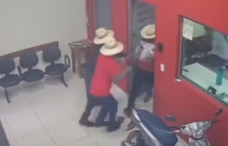 Imagens registradas por câmera de segurança do local mostra quando os criminosos, que usavam o mesmo estilo de chapéu, tentaram assaltar a loja que fica localizado na rua Dr Isaías Antunes, mas o assalto foi frustrado por funcionários que revidaram a tiros dentro do estabelecimento.