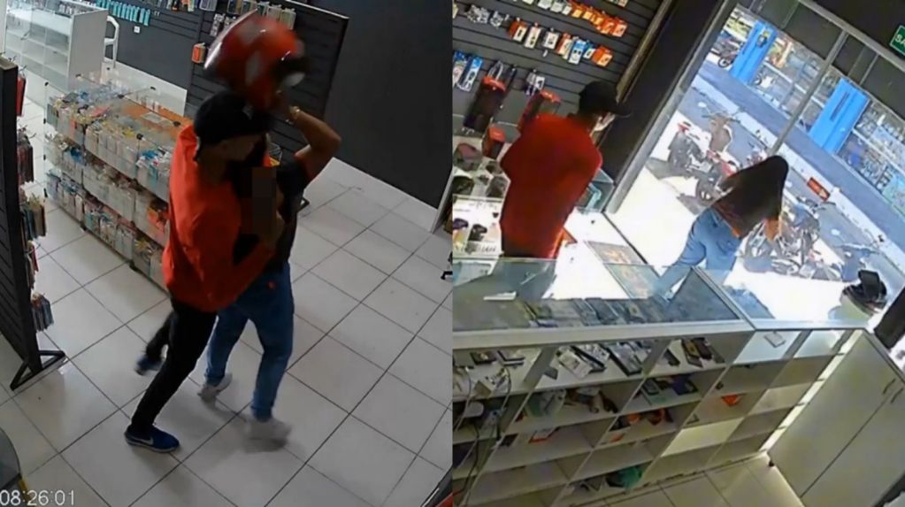 Vídeo: mulher reage a assalto em loja de celulares e consegue pedir socorro em Capanema
