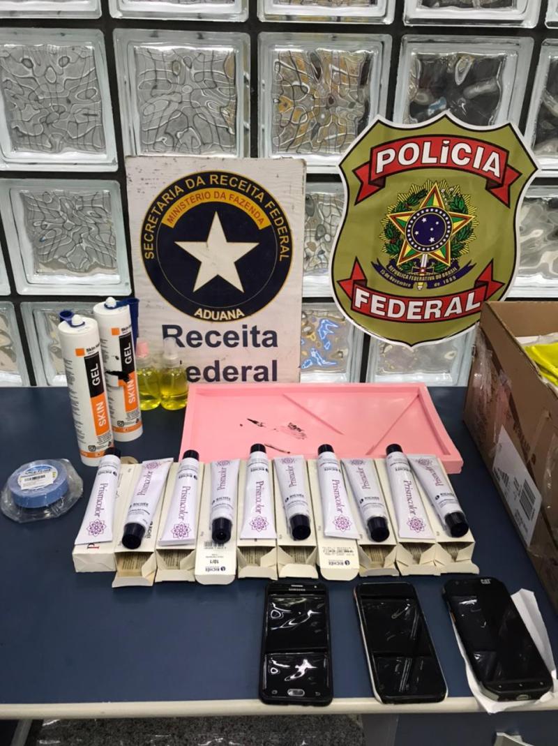 Segundo informações duas pessoas foram pegas em flagrante transportando material ilícito. Ao realizar uma abordagem do material, encontrou dentro da caixa vários produtos cosméticos suspeitos, momento em que a Polícia Federal foi acionada.