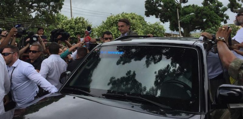 Ao deixar o local, Bolsonaro chegou a colocar parte do corpo para fora do carro e acenar, mas foi obrigado a voltar para dentro do carro.