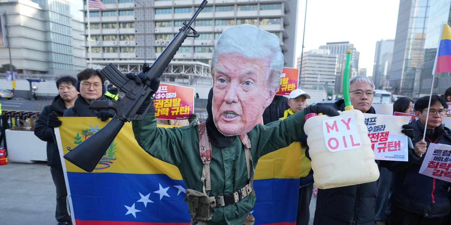 Similarmente, em Seul, na Coreia do Sul, manifestantes se concentraram perto da embaixada americana. Este protesto também foi realizado contra o governo dos Estados Unidos e o presidente Donald Trump, em sequência à operação dos EUA que removeu o presidente venezuelano Nicolás Maduro.