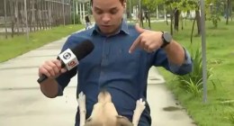 VÍDEO: cachorro ‘caramelo’ pula em repórter e rouba a cena em transmissão ao vivo
