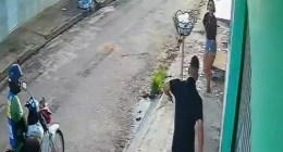 Nas imagens, um homem, não identificado, aparece sendo agredido com pedaços de madeira por no mínimo três mulheres.