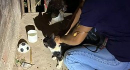 Os animais foram encontrados pela proprietária da casa, um dentro da sacola e outro na lama.