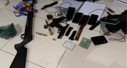 Com o grupo, os policiais encontraram armas de grosso calibre, munições e objetos roubados dentro de um carro.