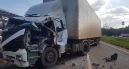 Colisão entre caminhão e caçamba deixa uma pessoa ferida na BR-316, em Benevides