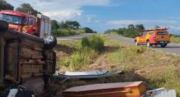 Veículo capotou e arremessou o motorista e o corpo que ele transportava