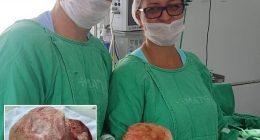 O médico que realizou a cirurgia disse que essa é uma das maiores pedras em bexiga já registradas no mundo.