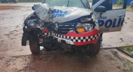 Viatura da PM colide com poste após cair em buraco na estrada em Moju