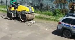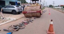 PM usa rolo compactador para destruir escapamentos barulhentos em Barcarena
