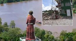 Desabou o grande mirante com estátua de São Benedito em Bragança