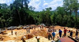 Fotos e vídeos que circulam em redes sociais mostram centenas de pessoas tentando encontrar ouro e pedras preciosas.