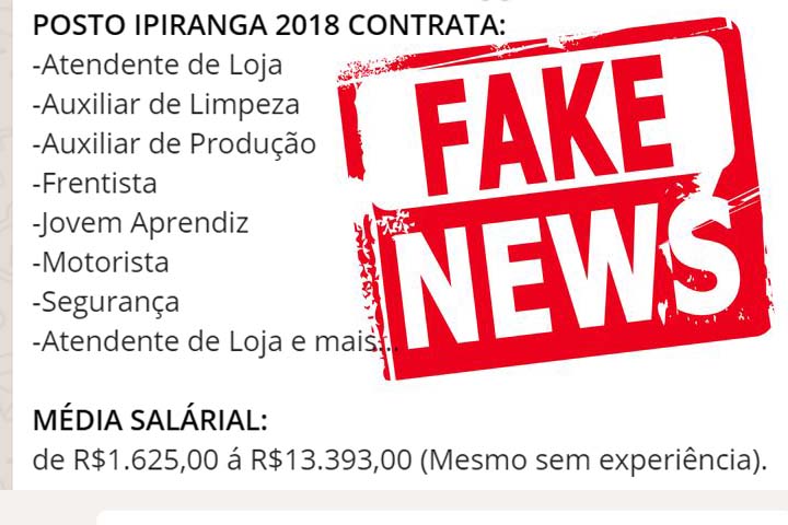 Suposta contratação realizada pela Ipiranga com salários de até 13 mil é “Fake News”