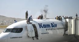 Imagens fortes estão sendo compartilhadas por jornalista iraniano. Alguns tentam fugir do país pendurados do lado de fora da aeronave.
