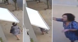 Mulher ‘engolida’ por portão automático ficou presa por 1h. Veja o vídeo!