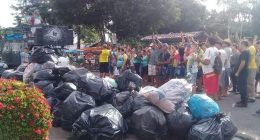 Ribeirinhos despejam lixo em frente à Prefeitura de Abaetetuba em protesto