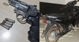 Um simulacro de arma de fogo e uma motocicleta sem placa foram apreendidos.