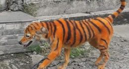 Não se sabe se ele possui um dono e nem quem foi o autor da pintura no animal.