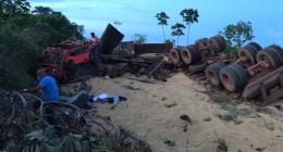 Caminhão que transportava madeira ilegal tomba em São Geraldo do Araguaia
