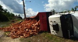 Caminhão tomba na rodovia PA-252, entre Moju e Serrana