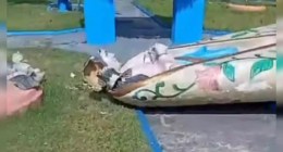 O vídeo foi compartilhado com uma legenda que mostra indignação dos moradores com o ato de vandalismo.