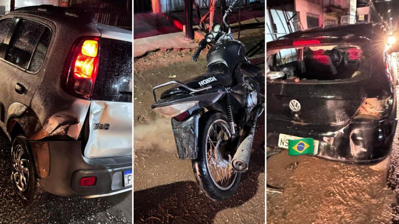 Após a colisão, uma guarnição da PM foi acionada. No local, a polícia constatou que o homem e a mulher haviam colidido contra um carro modelo Gol, de cor preta, que estava estacionado, e outro carro modelo Uno.