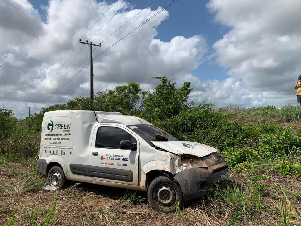 O “primeiro” acidente teria acontecido por volta das 08h30, quando o motorista perdeu o controle do veículo após desviar de um camaleão na rodovia. O carro que transportava duas pessoas capotou, e ficou praticamente destruído. Os passageiros foram socorridos pelo Corpo de Bombeiros.