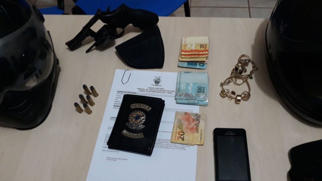 Na casa foi encontrado um revólver calibre 38 municiado, além de aproximadamente 1 mil reais em dinheiro e outros 15 mil em joias.