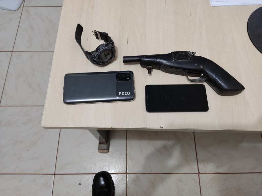 Alex foi preso, e alguns produtos recuperados. Uma arma de fabricação caseira foi apreendida em poder do acusado. O material roubado, uma motocicleta, a arma e ele foram apresentados na delegacia da cidade para aos procedimentos legais.