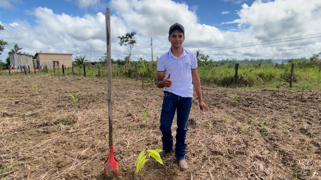 O jovem produtor rural Jhonathan, de 14 anos, recebeu um incentivo da Prefeitura de Tailândia, através da secretaria de Agricultura. O garoto ganhou mudas de cacau, cupuaçu, açaí, caju e outras, para iniciar a plantação da própria lavoura.