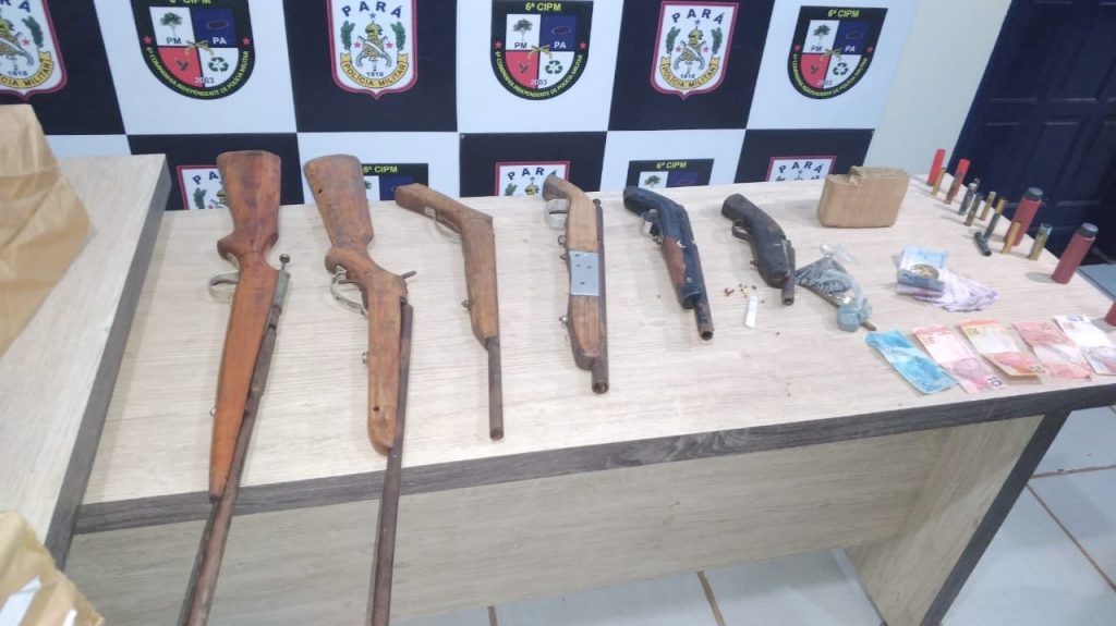 Seis armas de fogo, 500 gramas de maconha, além de 12 cartuchos e r$ 71,00 reais em espécie, foram apreendidos na noite de domingo (17) no Jardim Liberdade, zona rural de Tailândia, nordeste paraense.